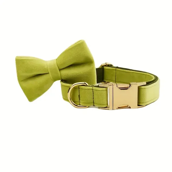 combineer met de lichtgroene, oranje of ecru fluwelen halsbanden voor een trendy total-look