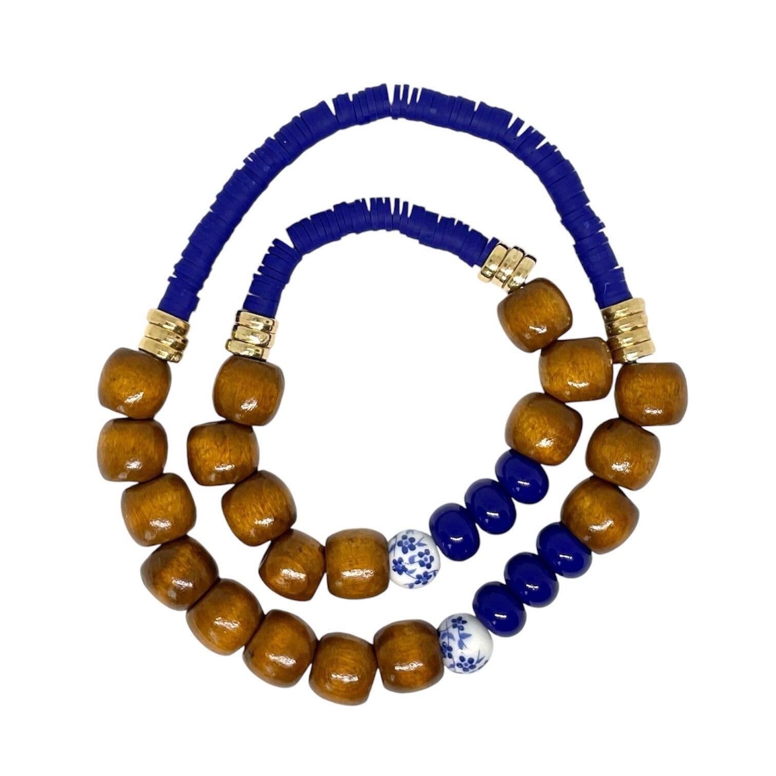 Sierketting met Delfts blauwe, hoogblauwe, marine blauwe en goud tinten
