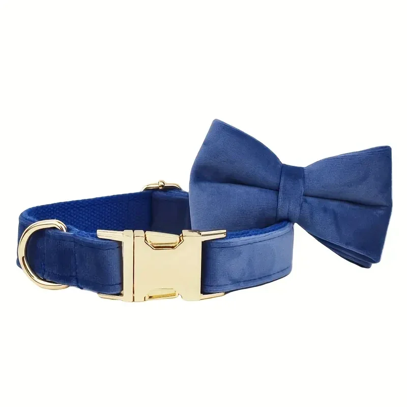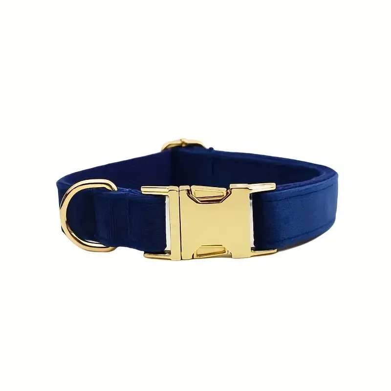 combineer met de hoogblauwe, marineblauwe, witte, beige en cognac fluwelen halsbanden voor een trendy total-look