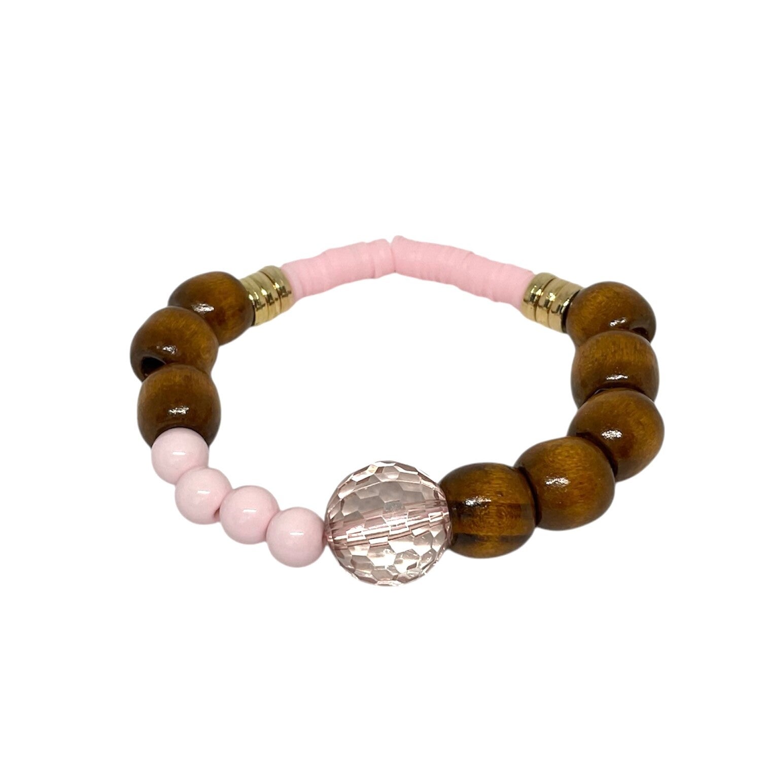 Sierketting met lichtroze, bruinhouten en goud tinten
