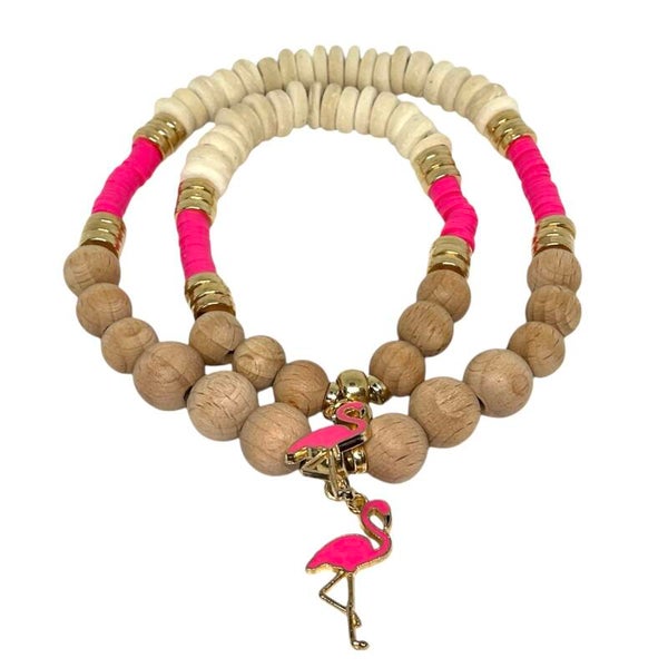 Armband met felroze, ecru, bruinhouten en gouden tinten