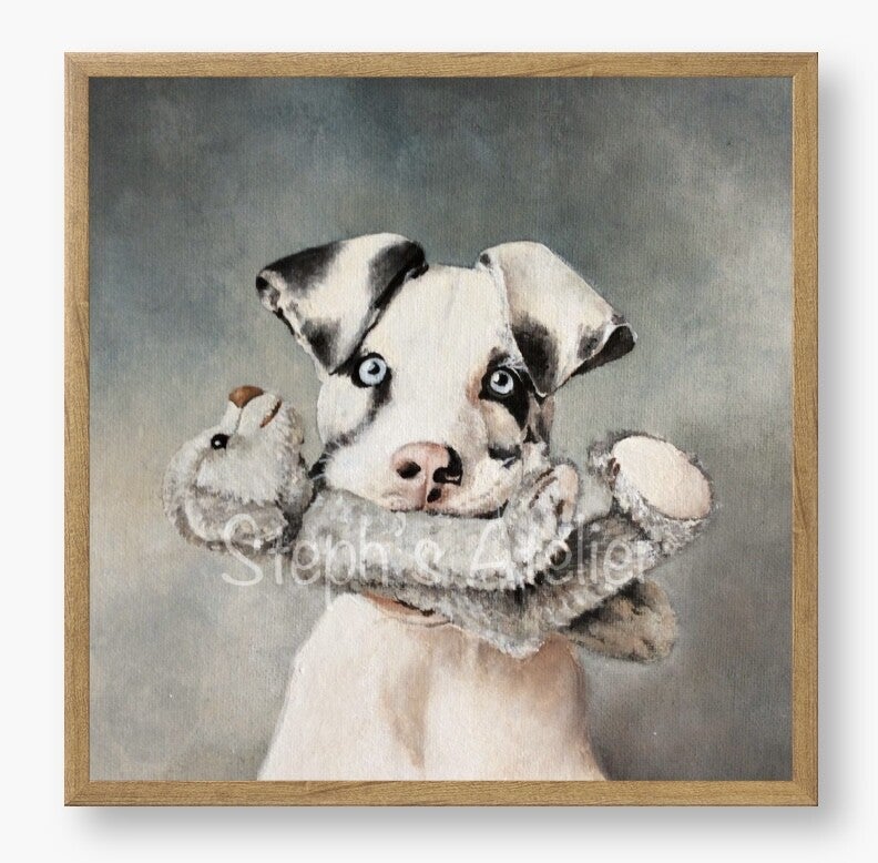 Ingelijste afbeelding “Wie wil er meespelen” zonder passe-partout