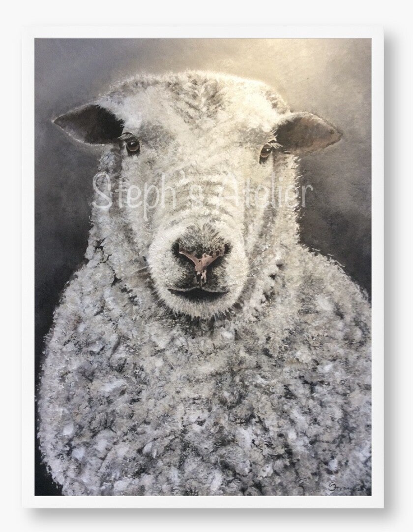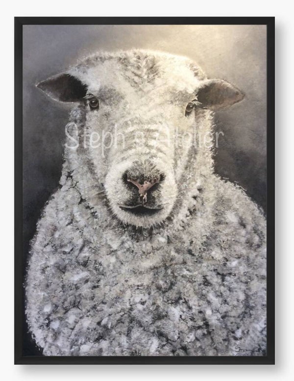 Ingelijste afbeelding “Billy het schaap” zonder passe-partout