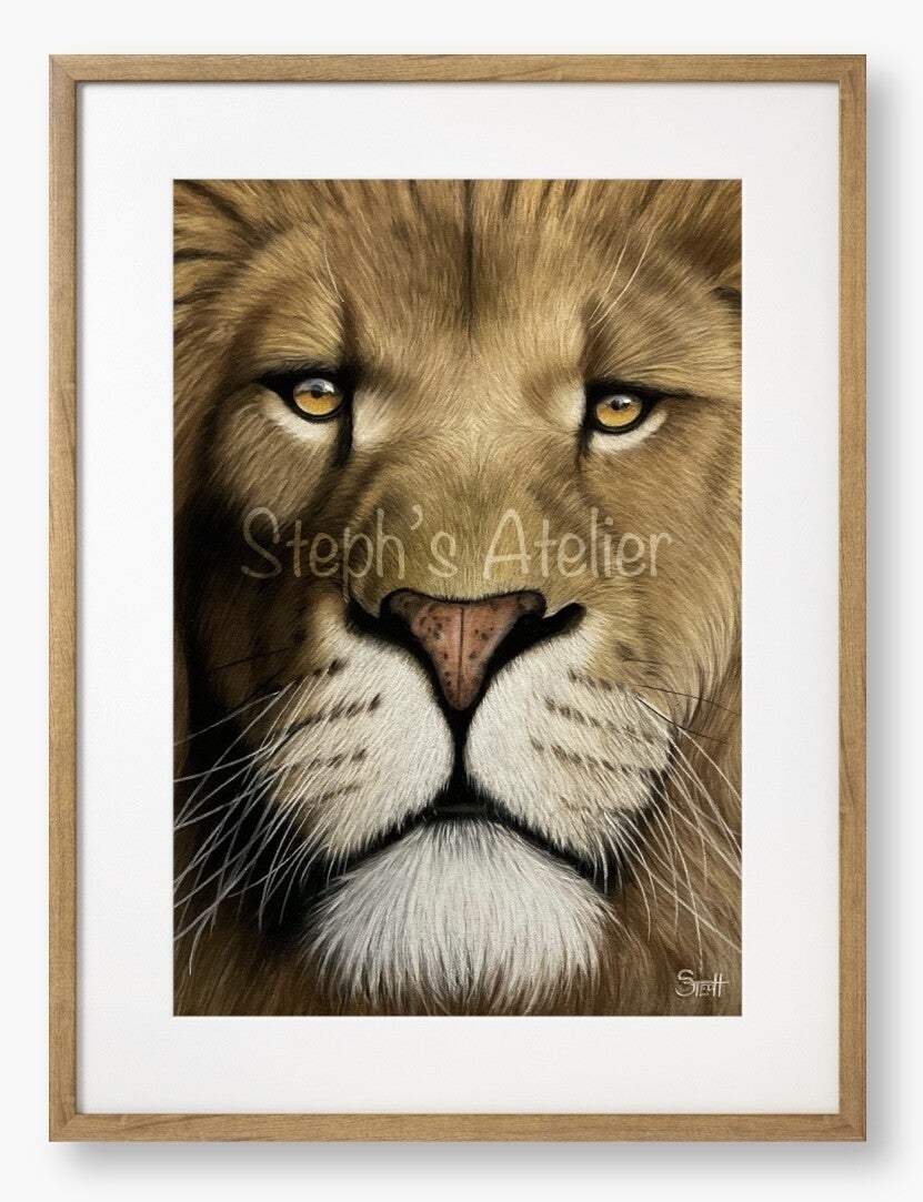 Ingelijste afbeelding “Close-up leeuw” met passe-partout