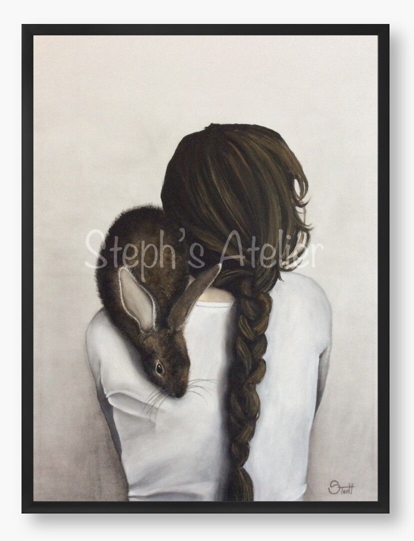 Ingelijste afbeelding “Meisje met konijntje” zonder passe-partout