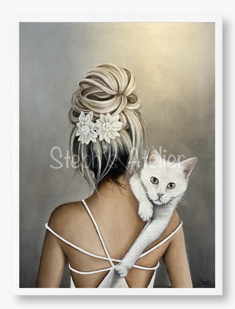Ingelijste afbeelding “Ladies in white” zonder passe-partout