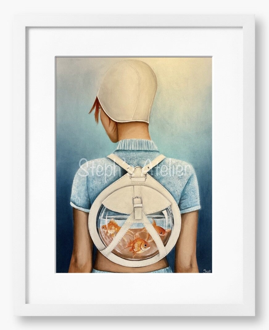 Ingelijste afbeelding “Naar de zwemles” met passe-partout