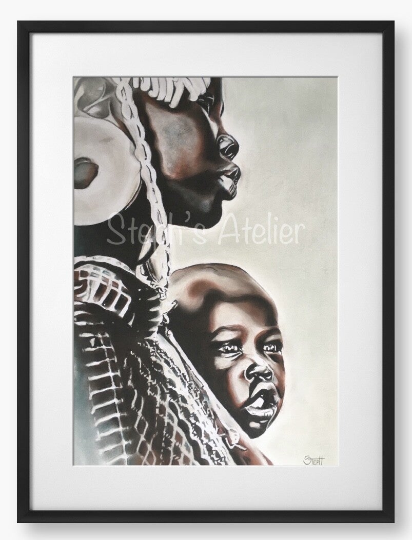 Ingelijste afbeelding “Moeder en kind” met passe-partout