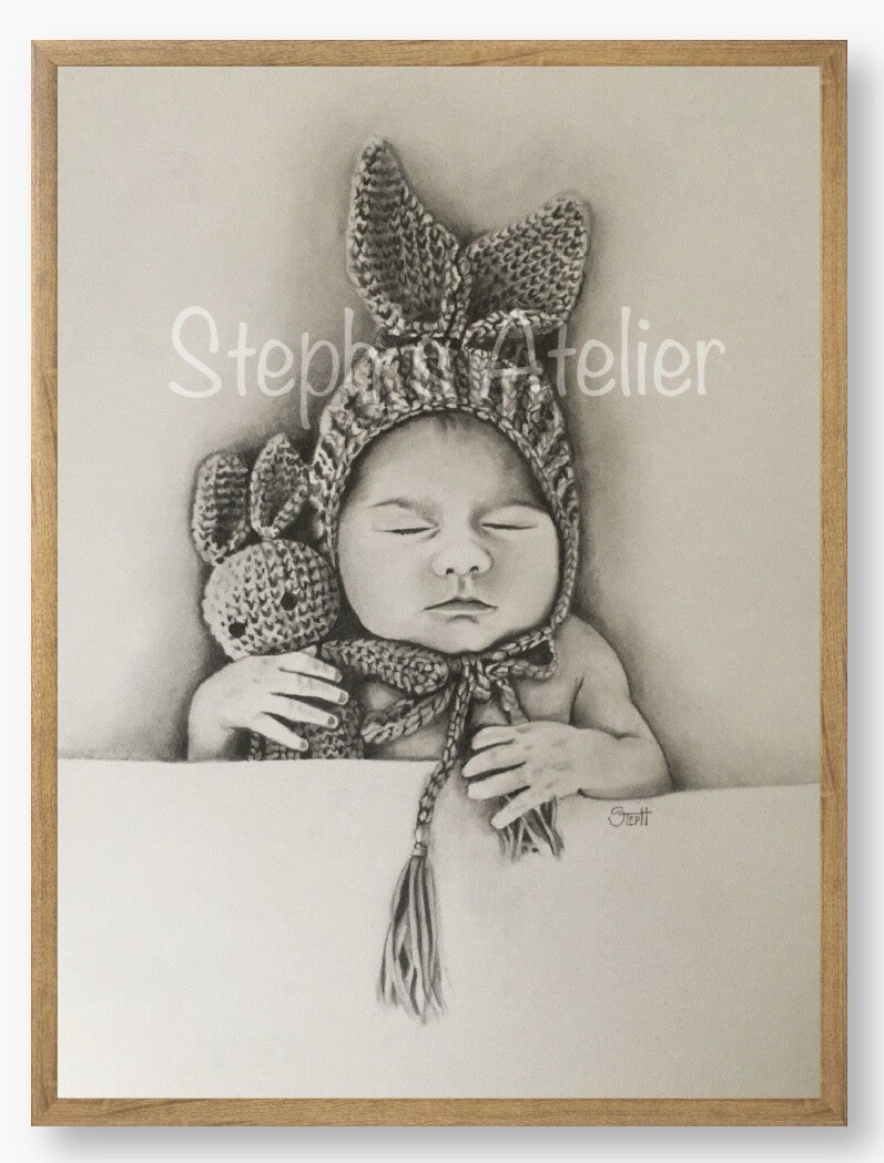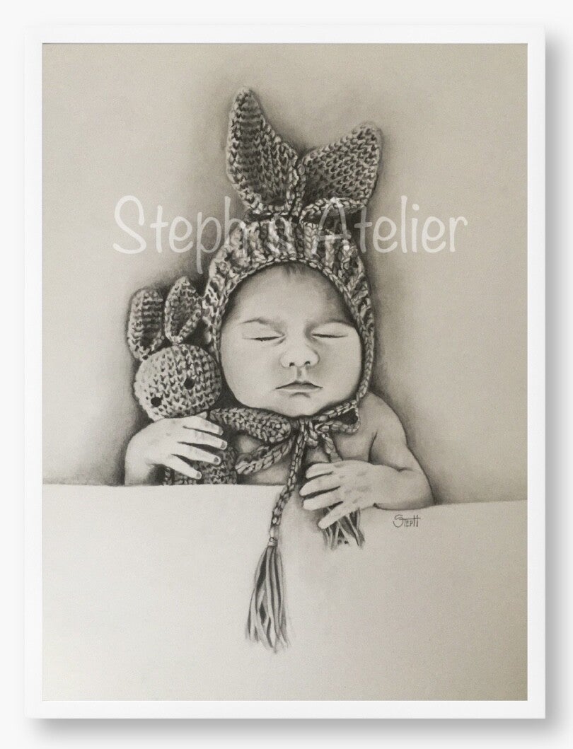 Ingelijste afbeelding “Baby met knuffel” zonder passe-partout