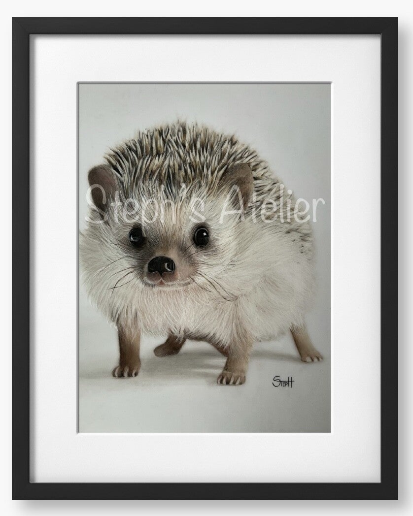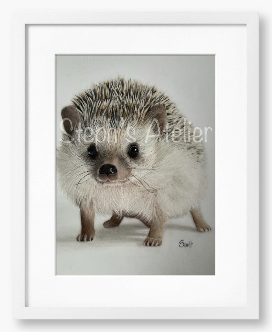 Ingelijste afbeelding “Harry de egel” met passe-partout