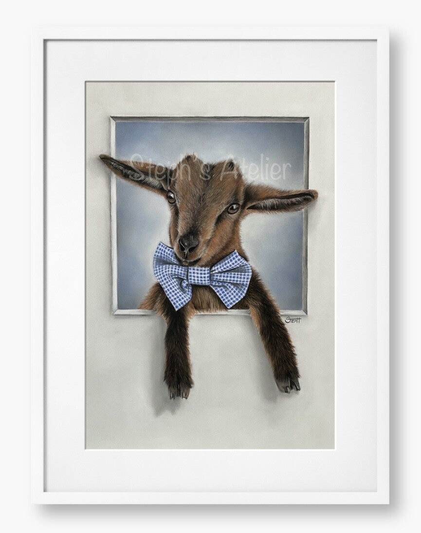 Ingelijste afbeelding “Gigi de geit” met passe-partout