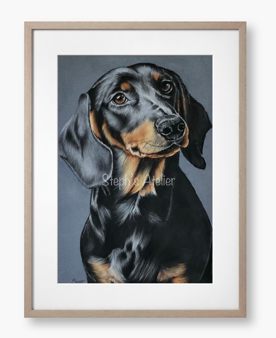 Ingelijste afbeelding “Theo het Teckeltje” met passe-partout