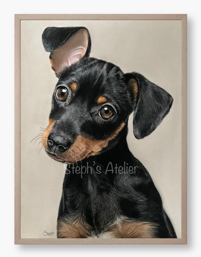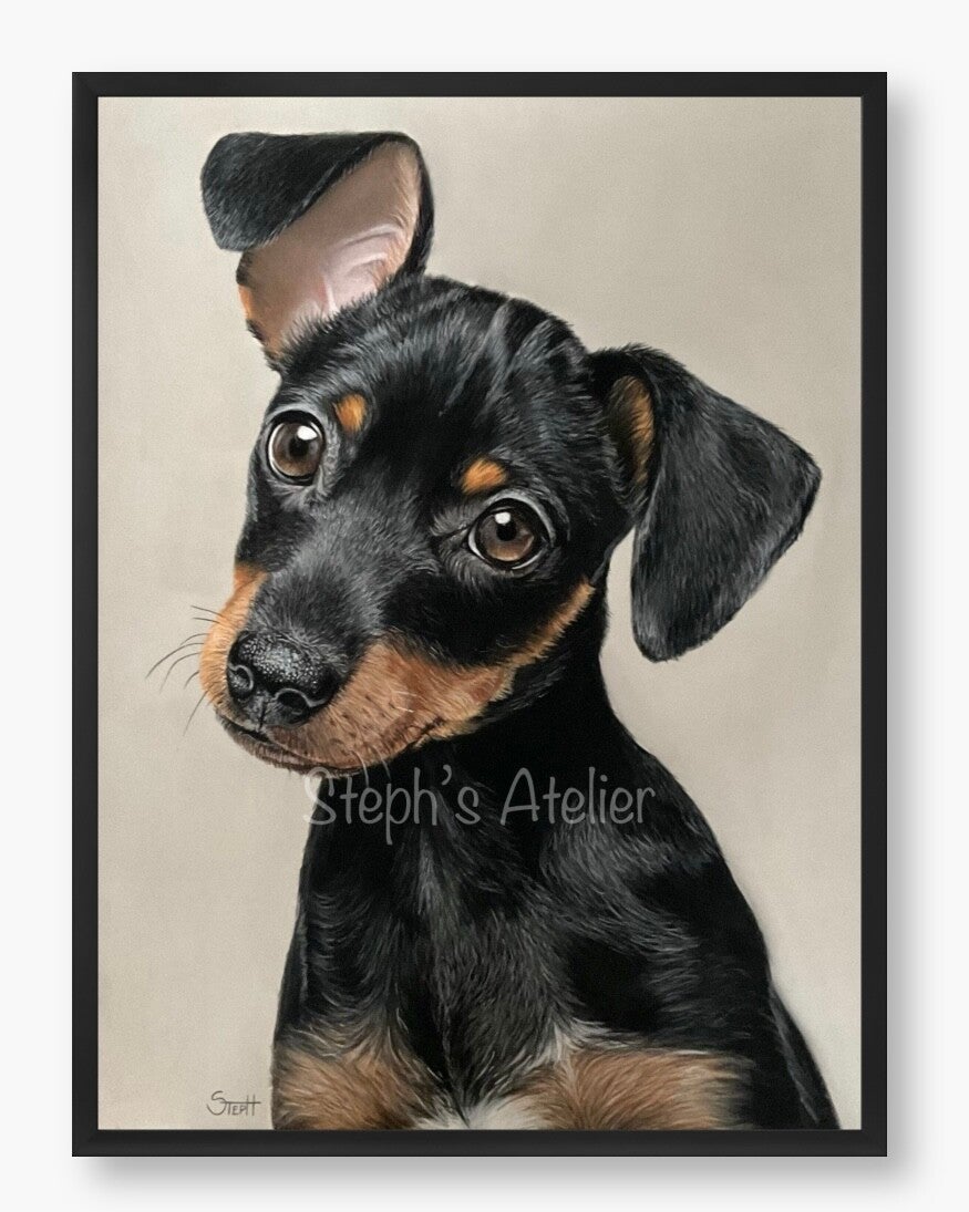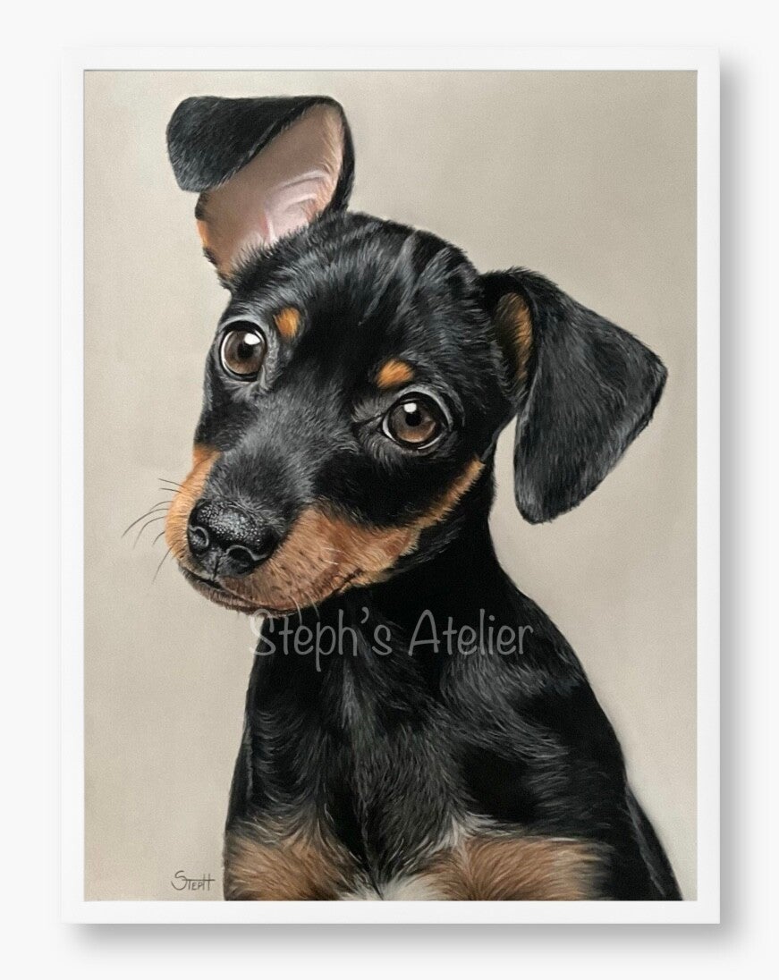Ingelijste afbeelding “Pitou, Dwergpinscher” zonder passe-partout