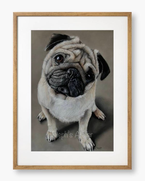 Ingelijste afbeelding “Mollie, Mopshond” met passe-partout