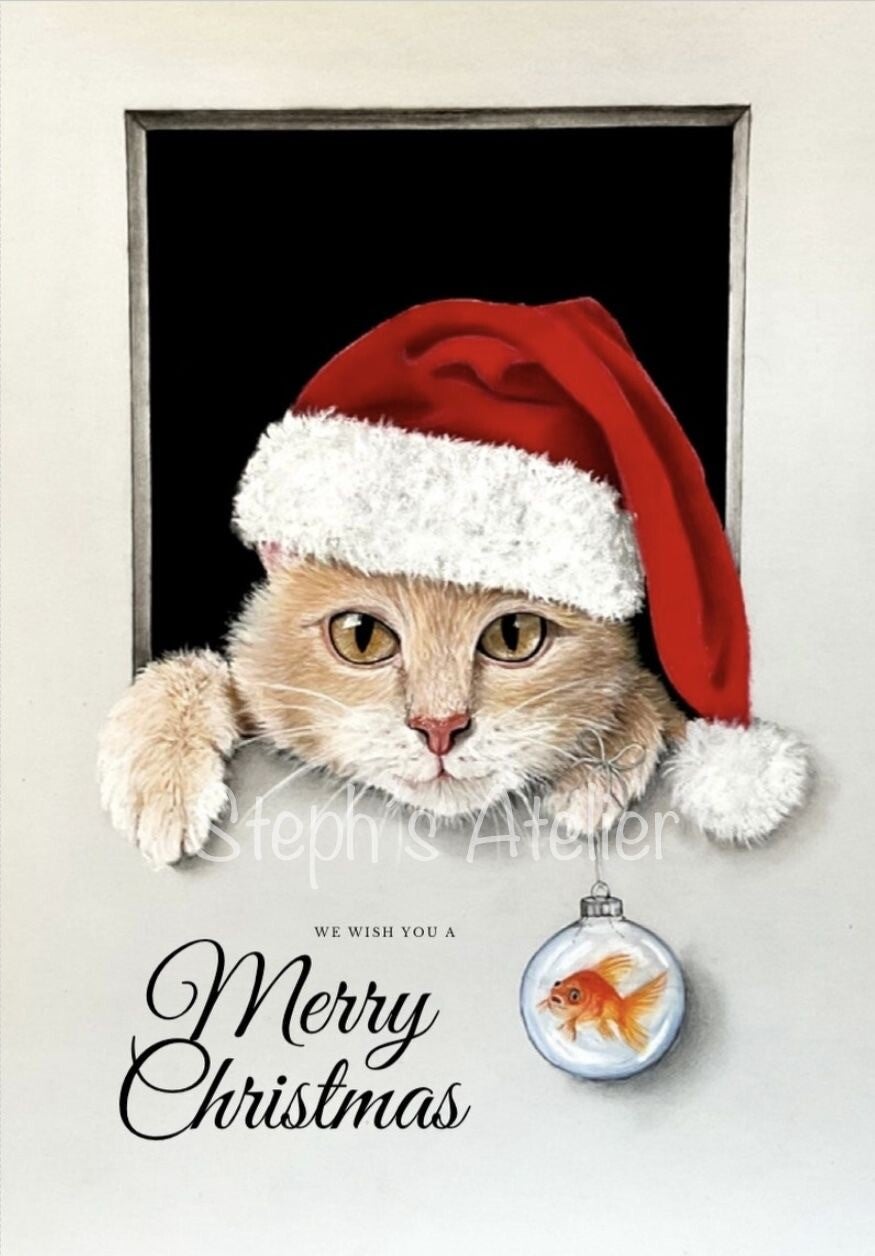 Christmas card cat and friend size A6
