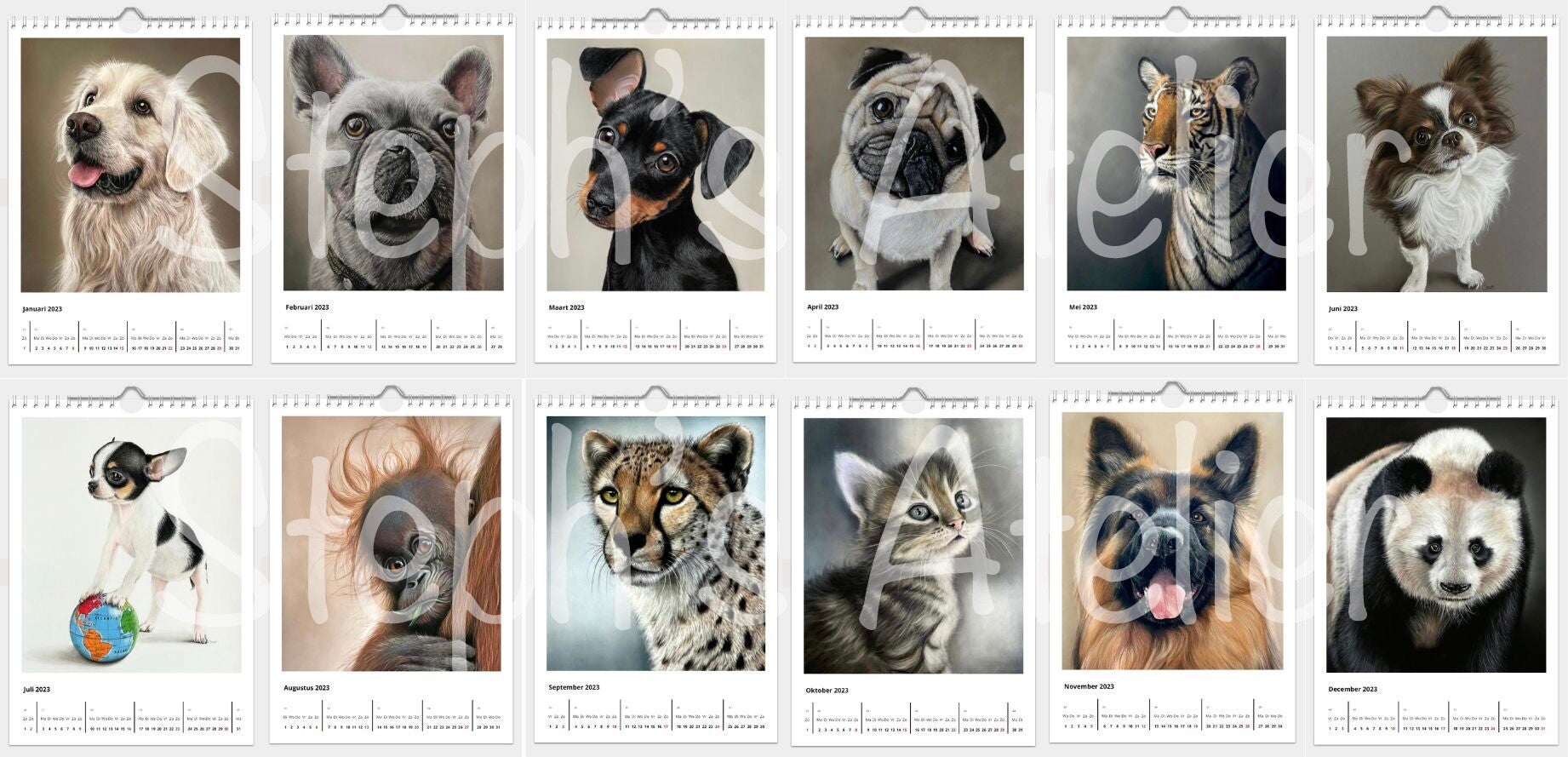 Mooie fotowandkalender voor 2023 in A3 formaat met foto's van de originele werken van Steph's Atelier van het voorbije jaar 2002